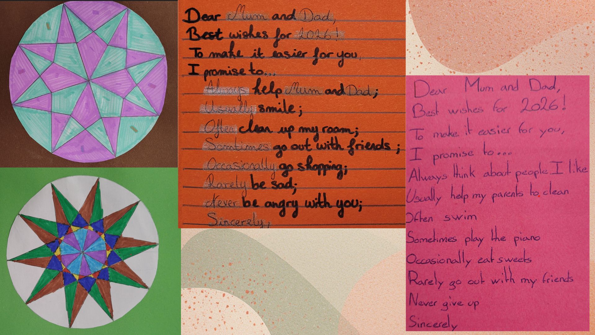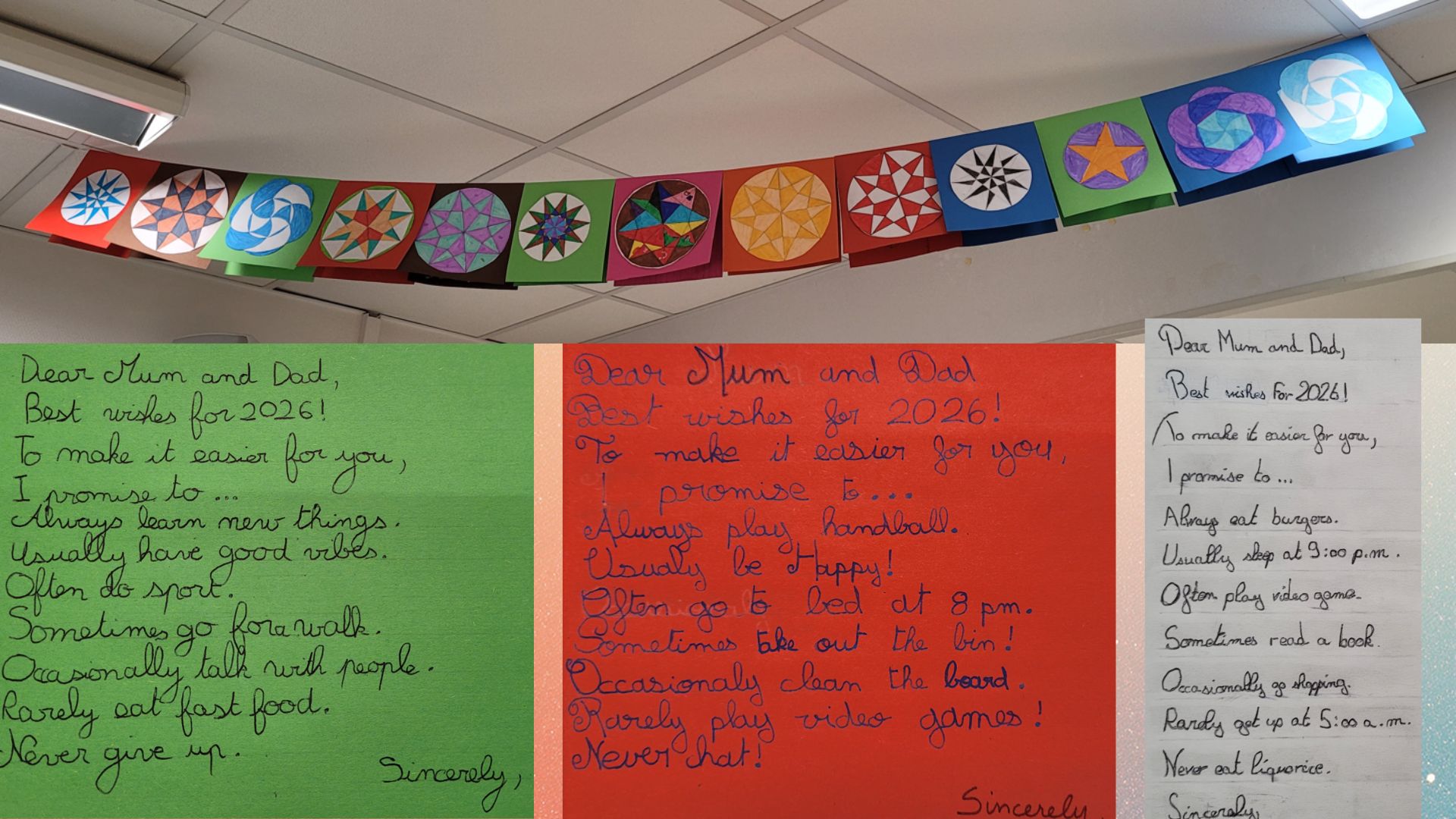 Les élèves de 6A et 6B ont travaillé sur un projet de création de carte de voeux en mathématiques et en anglais.